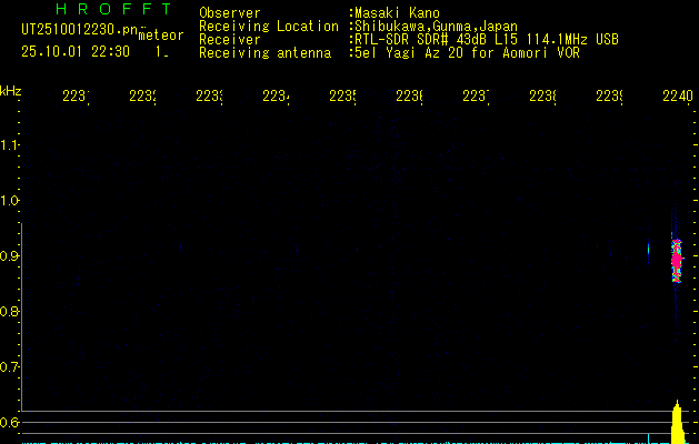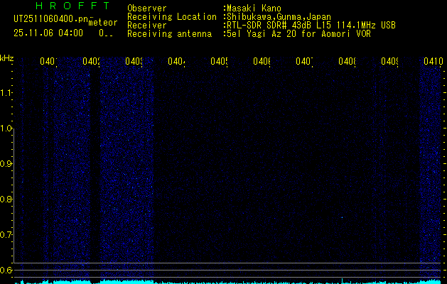 画像は、大川一彦氏が作成された HROFFT によって出力されたものです。画像内の時刻表示は世界時(UT)です。