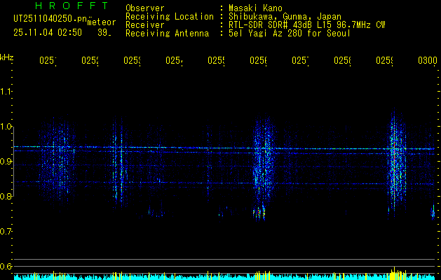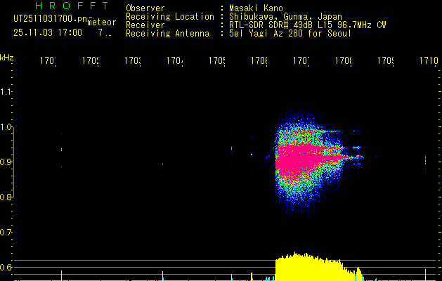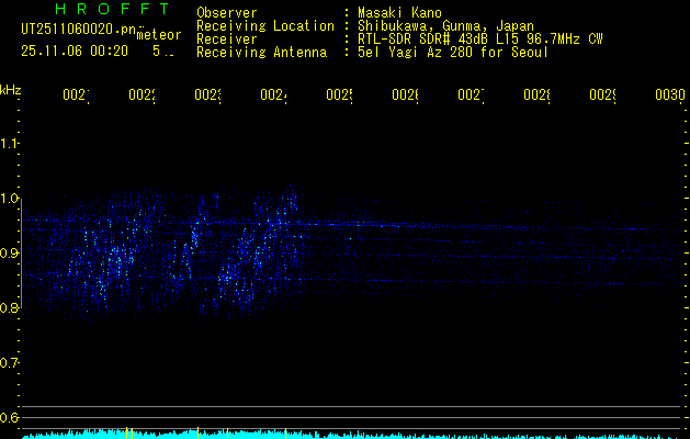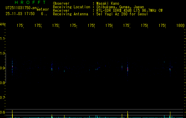 画像は、大川一彦氏が作成された HROFFT によって出力されたものです。画像内の時刻表示は世界時(UT)です。