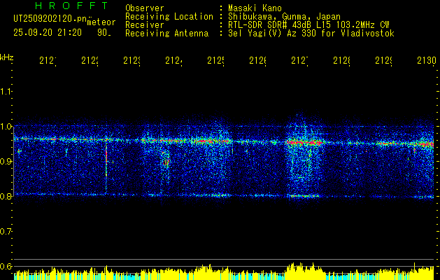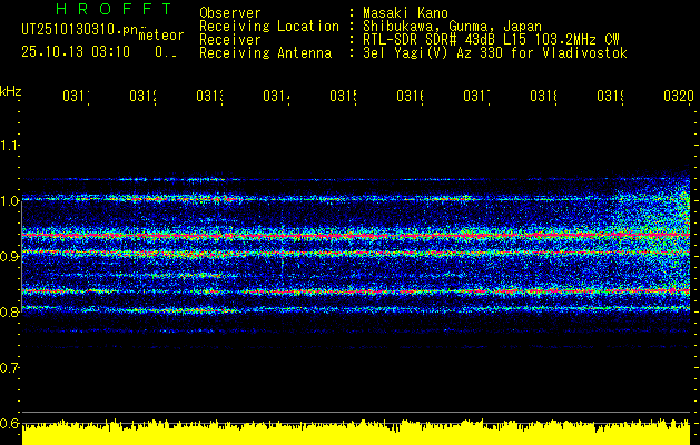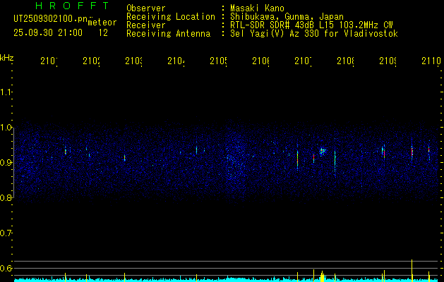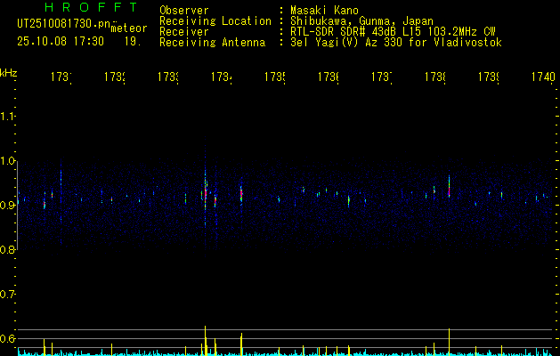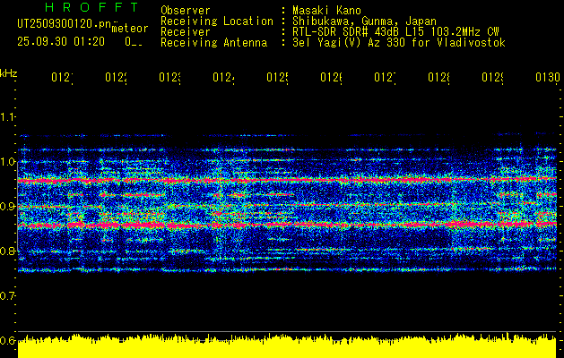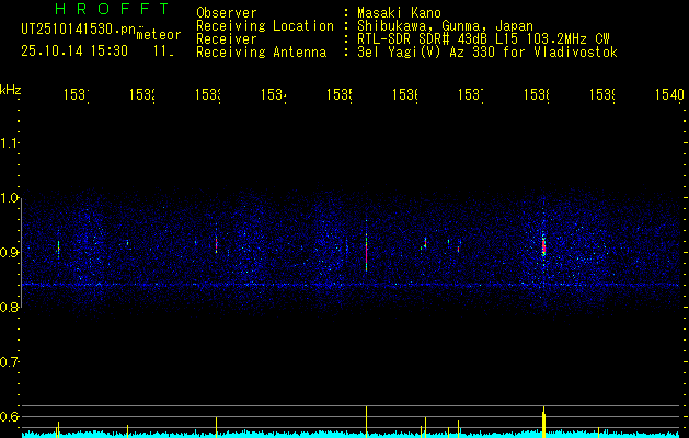画像は、大川一彦氏が作成された HROFFT によって出力されたものです。画像内の時刻表示は世界時(UT)です。